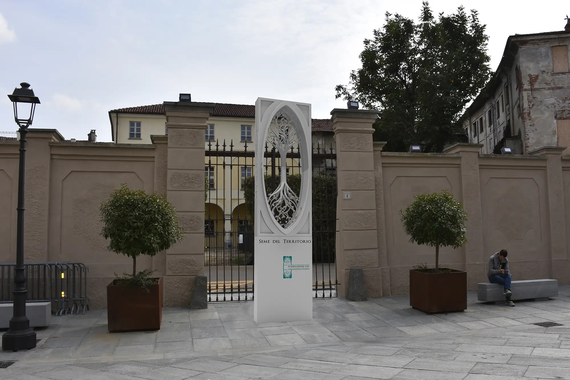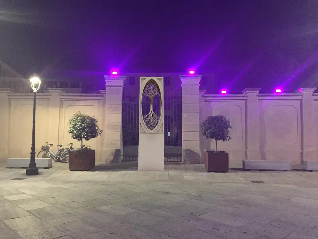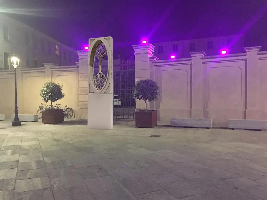 The most well-known public work is "The Angel of the Alta Langa" (2014–2015), a monumental sculpture located in Bossolasco. It was inaugurated on June 7, 2015, in Piazza XX Settembre, and is described as an aluminum angel approximately 3 meters tall, with a silvery finish and large wings opened in an "embrace". In Bossolasco, he also promoted a contemporary sculpture park in the woods, "Sentè d'Art" (started in 2008)